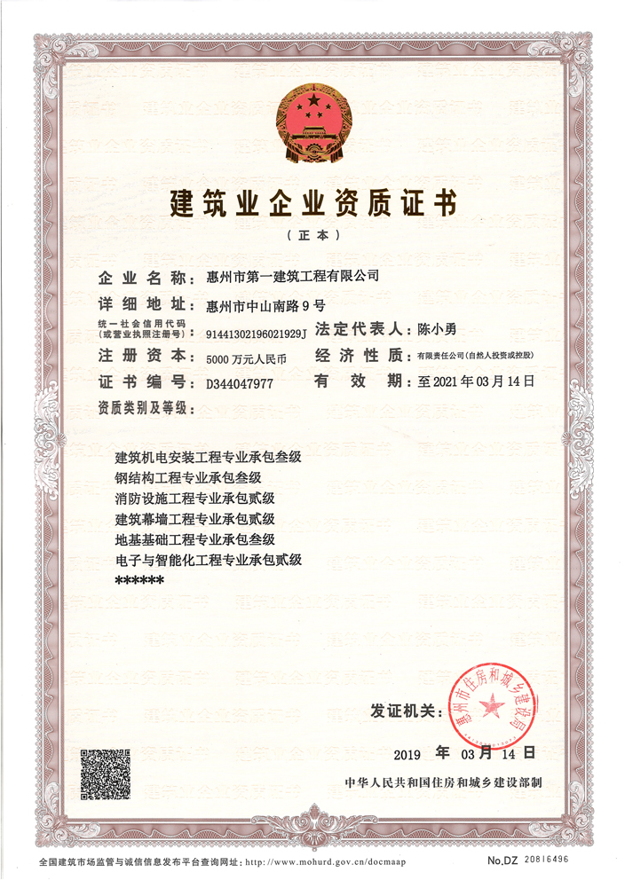 版權(quán)所有:惠州市第一建筑工程有限公司 ?地址:惠州市中山南路9號(hào)? ? 惠州市博羅縣羅陽街道新鳳路1號(hào)