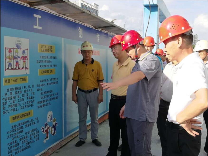 ? ? ?為認(rèn)真貫徹黨中央、國務(wù)院和省委、省政府領(lǐng)導(dǎo)同志近期作出的關(guān)于深刻汲取事故教訓(xùn)、抓好當(dāng)前安全生產(chǎn)工作,切實(shí)做好國慶期間全市安全生產(chǎn)工作。林洪副市長于2017年9月25日下午3:00帶隊(duì)到我司“恒裕世紀(jì)廣場二期” 項(xiàng)目工地開展國慶節(jié)前安全生產(chǎn)督查檢查工作。我公司黃副總、許副總認(rèn)真的向林副市長及主管領(lǐng)導(dǎo)介紹該工程項(xiàng)目概況,詳細(xì)的匯報了工程項(xiàng)目的安全生產(chǎn)情況,并虛心聽取主管領(lǐng)導(dǎo)的建議和意見,以及對我們接下來的工作提出指示和要求,要求我們接下來一定要再接再厲,在做好質(zhì)量的同時,抓好安全生產(chǎn),文明施工。本次項(xiàng)目的安全大檢查得到了市長及主管領(lǐng)導(dǎo)的一致好評與肯定。