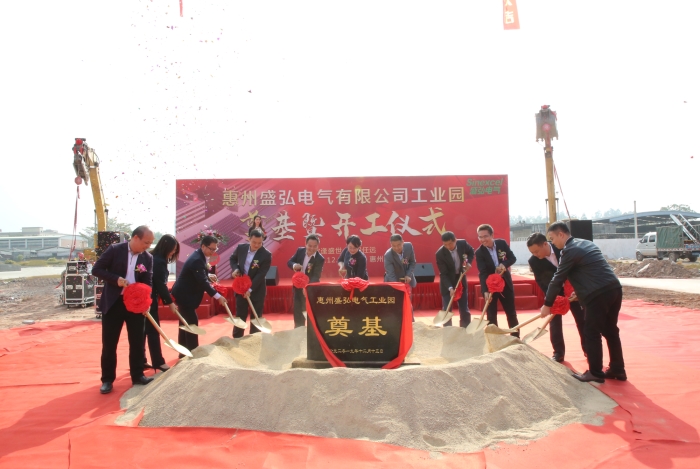 ? ? 2019年12月13日上午,由我司承建的“惠州市盛弘電氣工業(yè)園”項(xiàng)目奠基暨開工儀式在惠環(huán)街道隆重舉行。我司陳小勇董事長、總經(jīng)理及參建相關(guān)單位領(lǐng)導(dǎo)、嘉賓出席該項(xiàng)目開工儀式并為項(xiàng)目揮鏟奠基培土。
